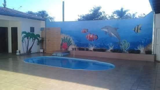 A chácara também possui um belo jardim, piscina e permite a criação de animais.