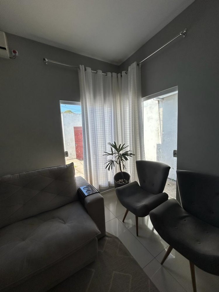 A casa é térrea e possui 3 quartos.